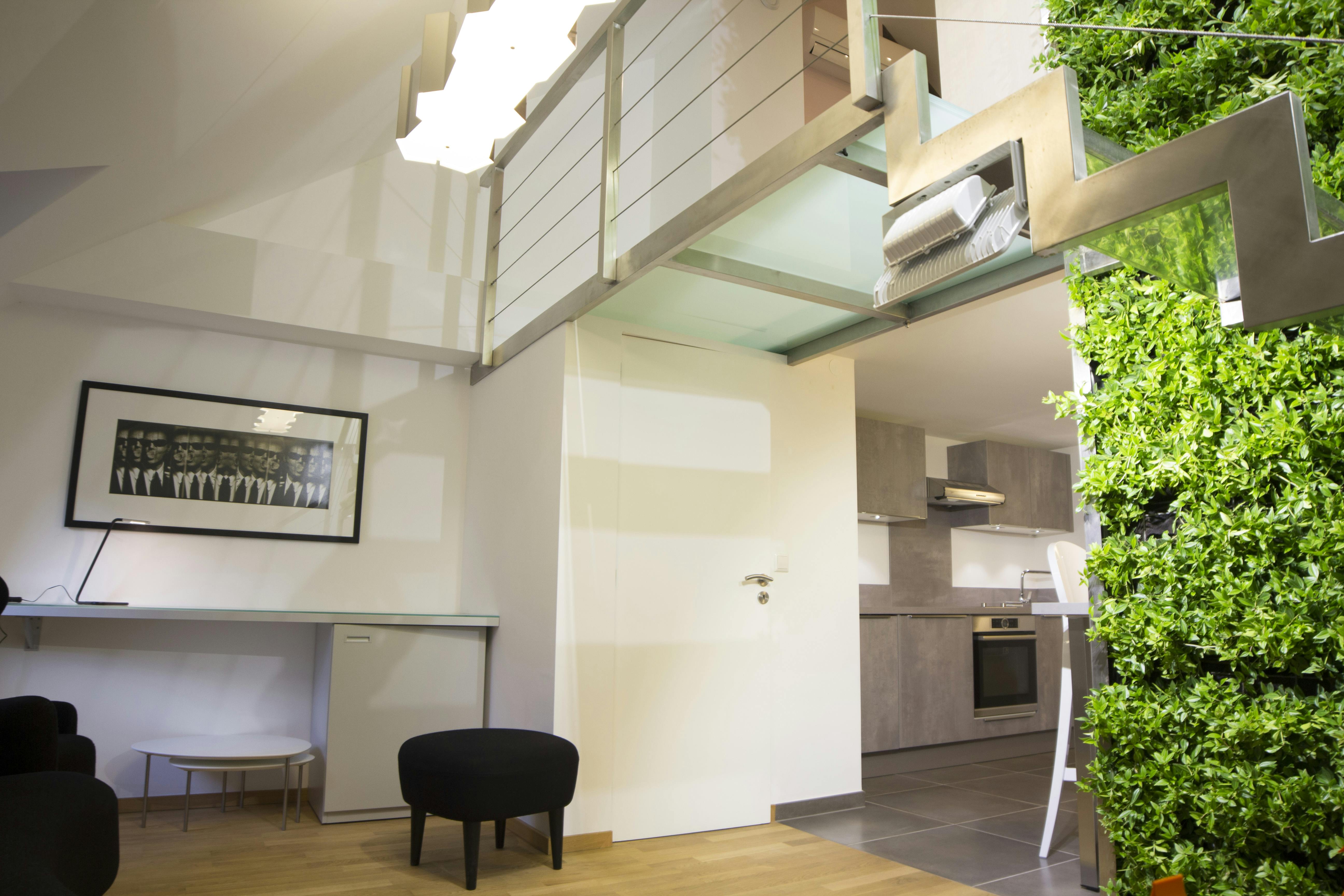 Vegetal wall, luminotherapy, essential oil diffuser.