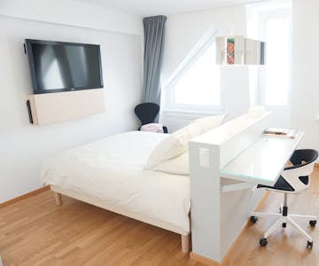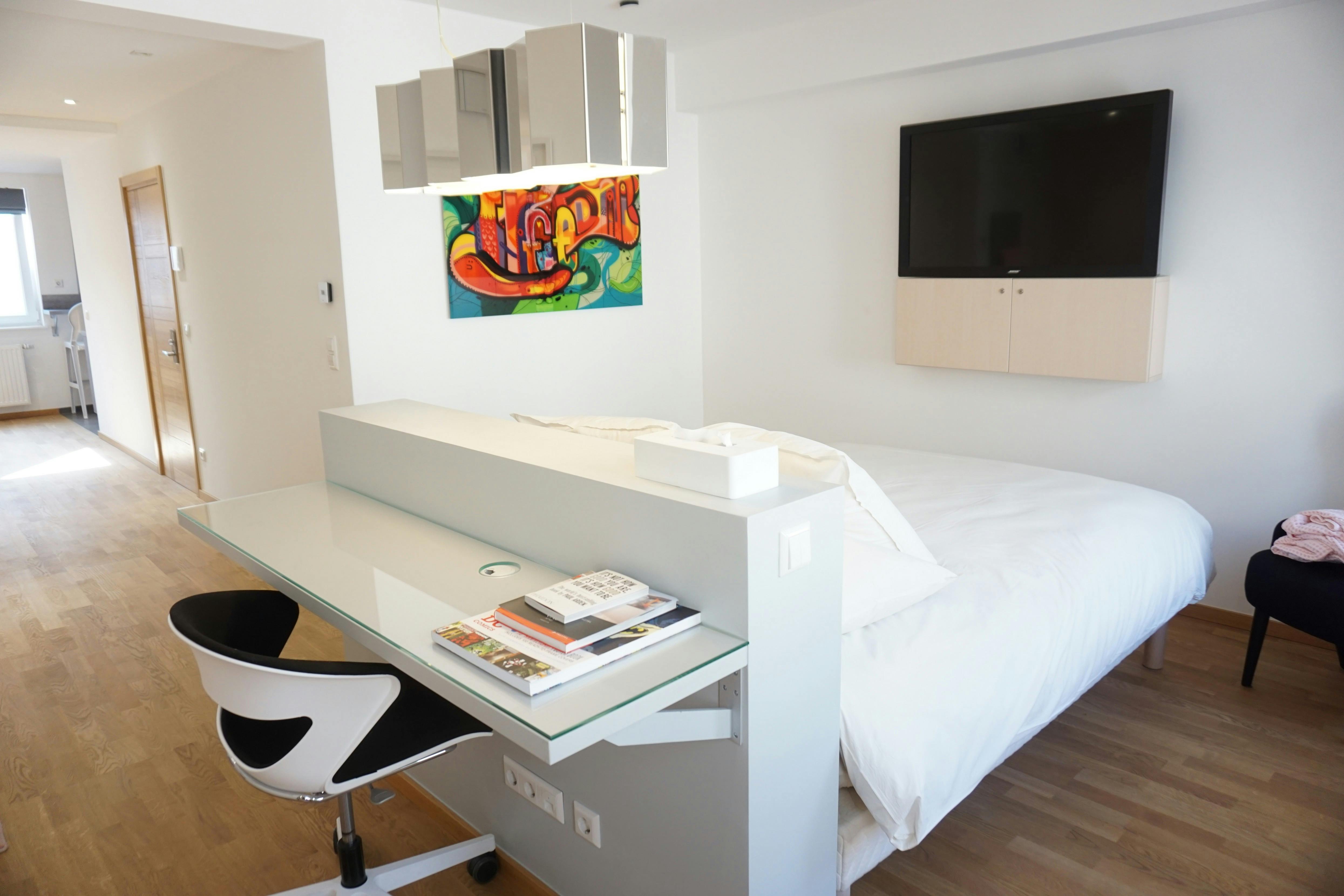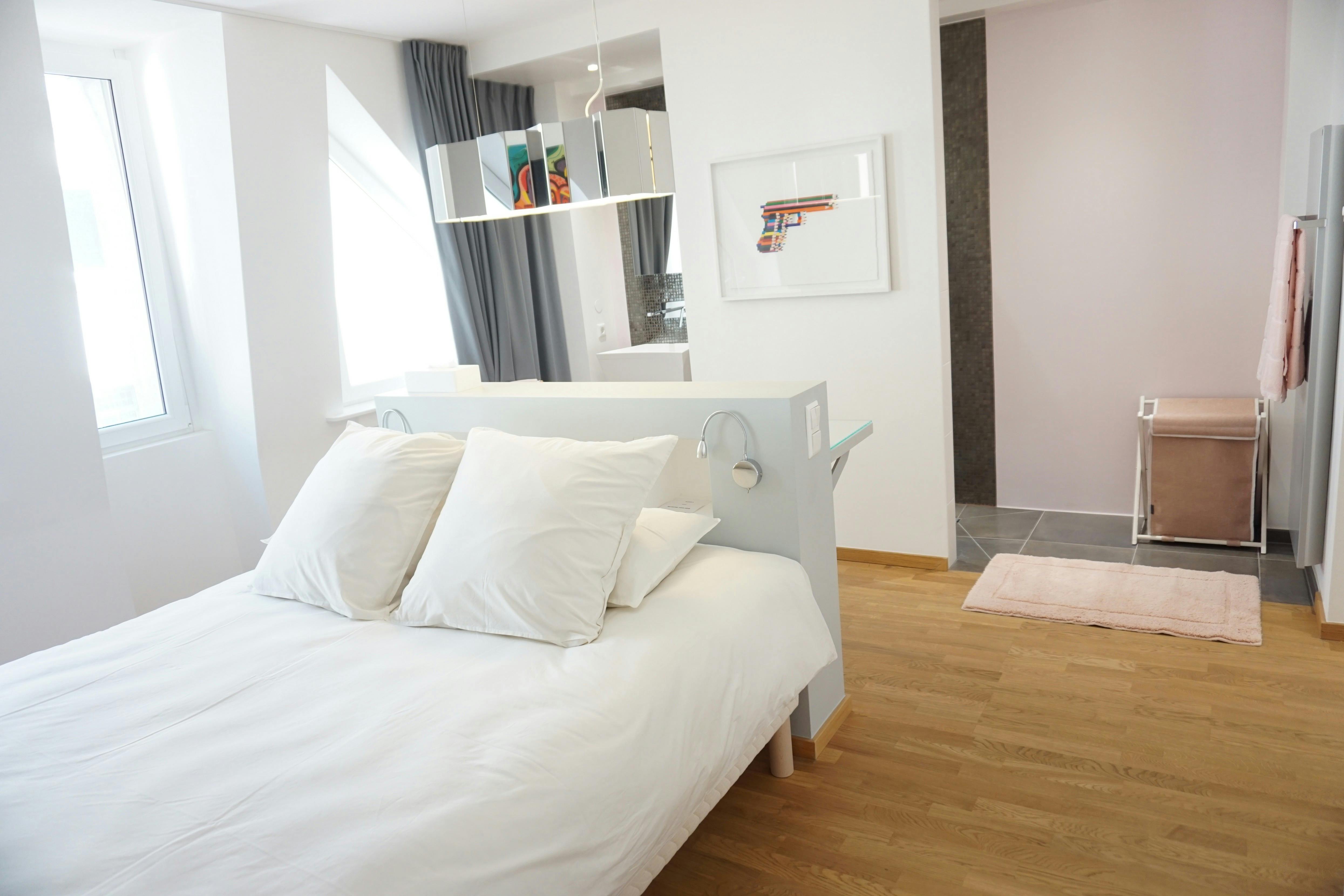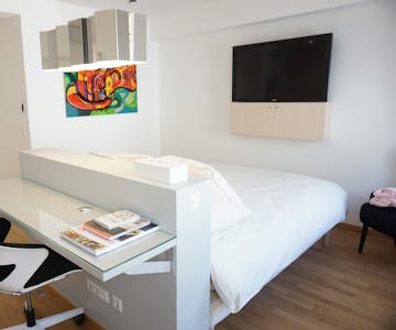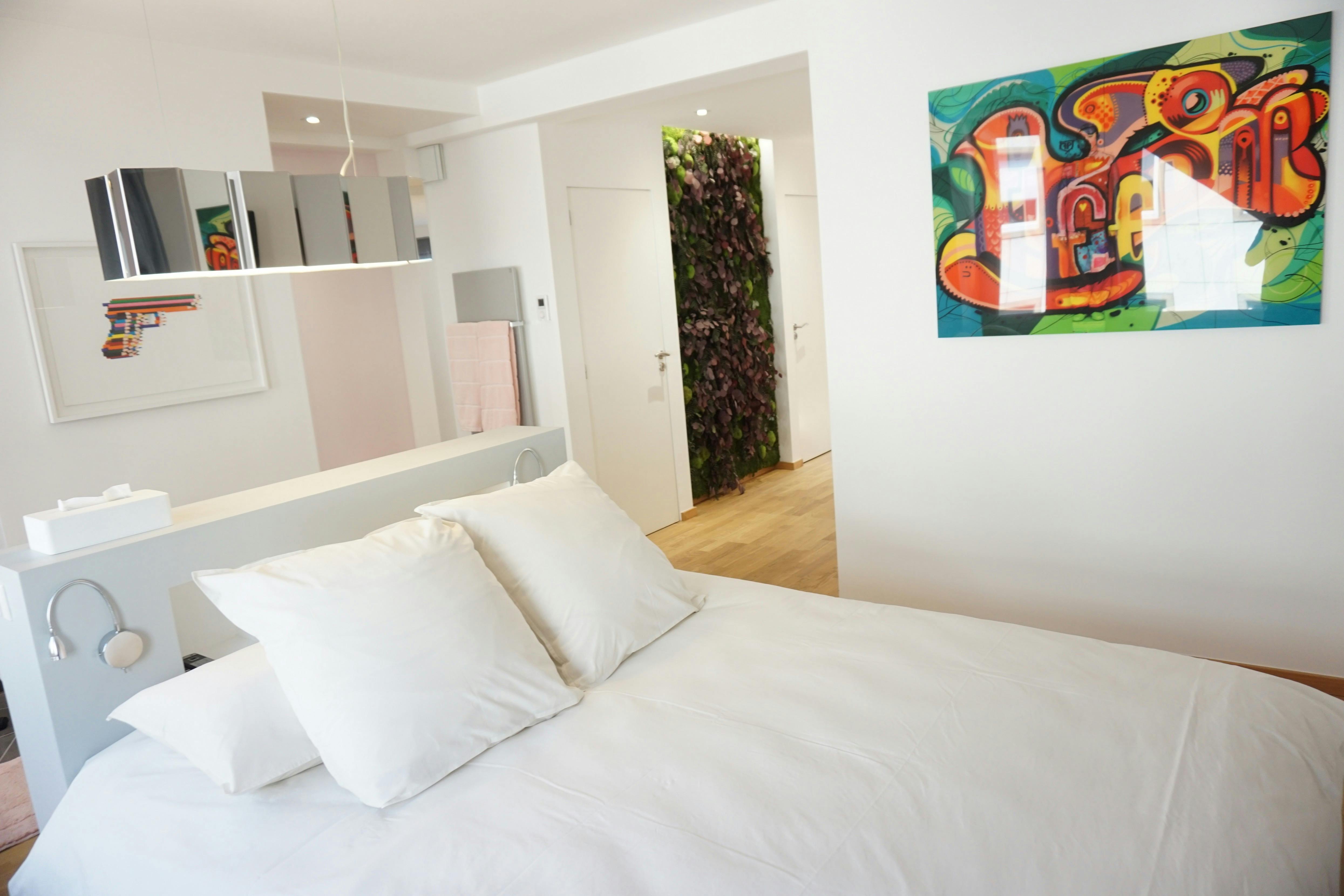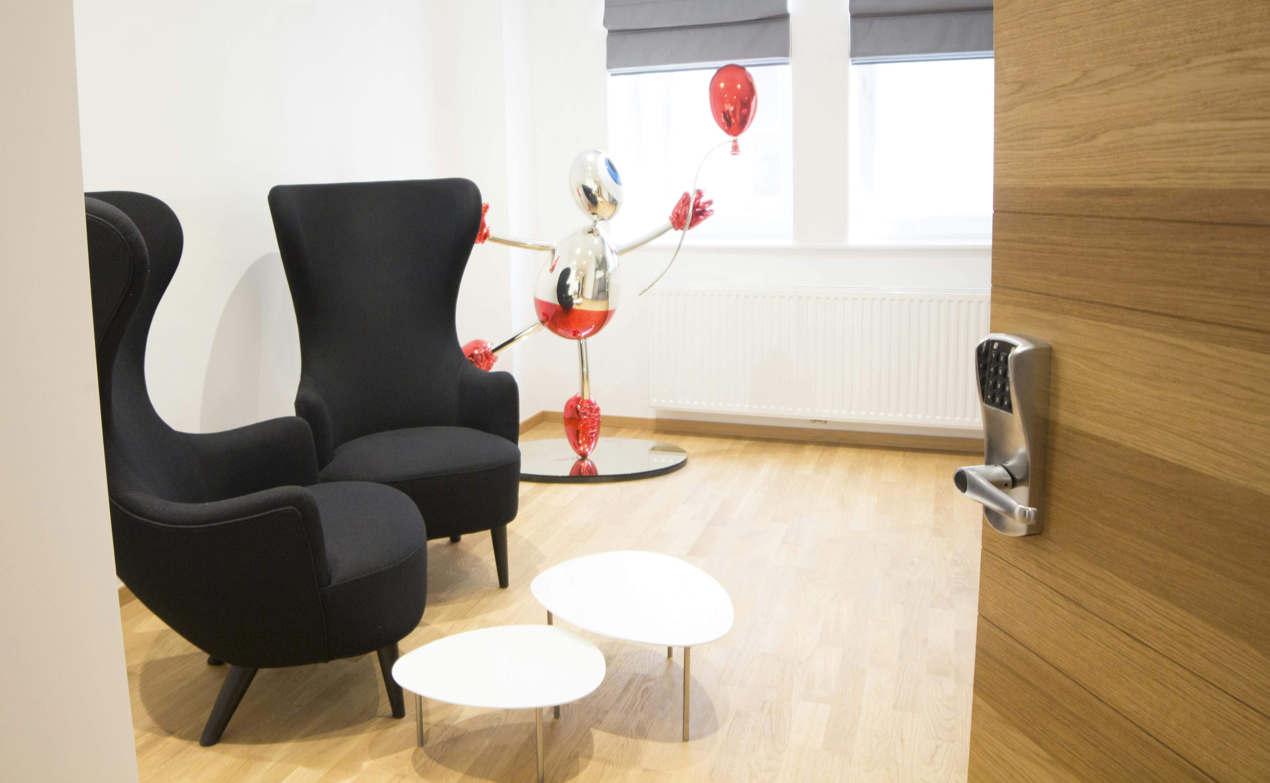 Luxurious designer furniture (Tom Dixon) and works by famous artists (Vasarely, Liu Bolin) and those who will be.
